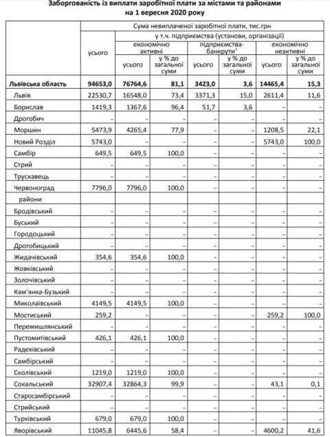 За територіальним розподілом найбільші обсяги боргів були у Сокальському (32,9 млн грн), Яворівському (11 млн грн) районах та Львові (22,5 млн грн).