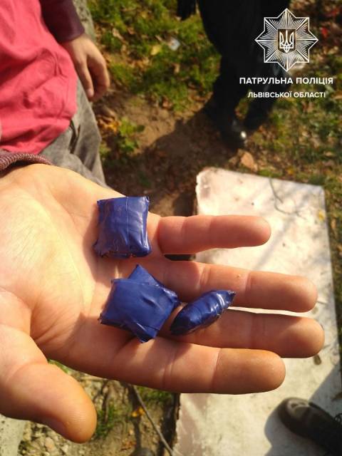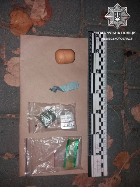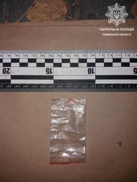 "Один з осіб, різко витягнув з кишені поліетиленовий пакет і спробував його знищити. Патрульний відреагував миттєво, вхопив чоловіка за руку та одягнув кайданки. В пакеті була речовина рослинного походження. Також в 19-річного мешканця Львова виявили пакет з порошкоподібною речовиною білого кольору, таблетку жовтого кольору, марку (зі слів ЛСД) та подрібнена речовина запакована в 5-гривневій купюрі. На місце події викликали слідчого" – йдеться у повідомленні.