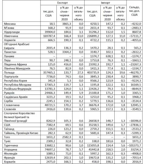 Підприємства області здійснювали зовнішньоторговельні операції з партнерами із 163 країн світу. Найбільші частки експортованої продукції припали на Польщу (27,3% від загальнообласного експорту), Німеччину (13,0%), Чехію (7,6%) та Данію (6,6%). Експорт товарів у країни Євросоюзу становив 1048,0 млн дол (80,2%) і збільшився, порівняно з січнем-червнем 2020 року, на 38,1%.