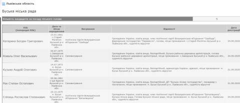 Центральна виборча комісія оприлюднила кількість кандидатів, які претендують на посаду міського голови Буська.
