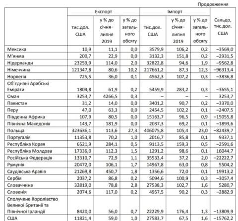 імпорту), Німеччину (12,3%) та Китай (10,5%). Імпорт товарів з країн Євросоюзу становив 1045,6 млн дол (59,3%) і зменшився, порівняно з січнем-липнем 2019 року, на 1,1%.