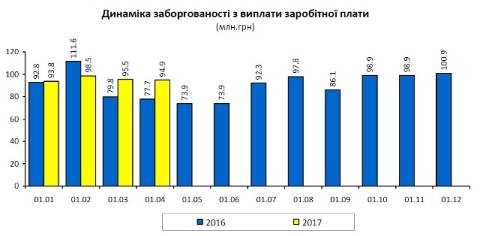 Станом на 1 квітня кількість працівників, які несвоєчасно або не у повному обсязі отримали заробітну плату, становила 2 тисяч осіб. Кожному із них не виплачено у середньому 7871 грн, що на 31,3% більше від середньомісячної заробітної плати в області, нарахованої у березні 2017 року.