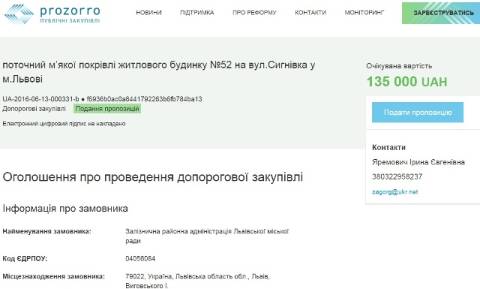Це було опубліковано на сайті електронних закупівель ProZorro.