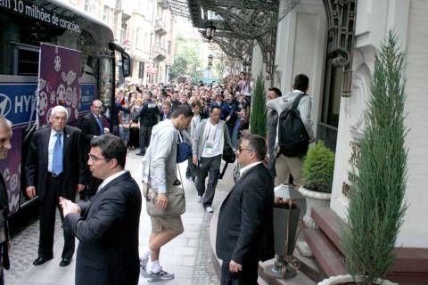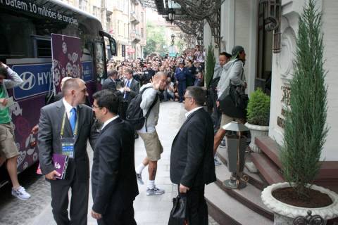 Неприємним моментом у святі футболу стали самі ж футболісти, котрі виходили із автобуса, навіть не звертаючи увагу на своїх фанів. Лише Роналду звернув увагу після того, як натовп почав скандувати його ім’я .