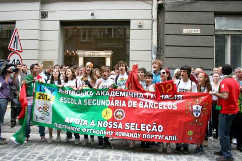Португальська збірна прилетіла до Львова після німців, але це не завадило зібрати біля готелю, в якому вони житимуть, близько двох сотень вболівальників та фанатів.