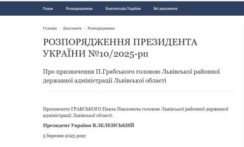 "Призначити Грабського Павла Павловича головою Львівської районної державної адміністрації Львівської області" – йдеться в документі.