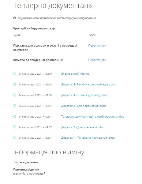Аукціон повинен був стартувати 2 грудня, однак його скасували через відсутність пропозицій. Додамо, очікувана вартість послуг становила 650 000 грн.