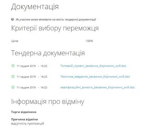 Аукціон мав стартувати 17 грудня, однак його відмінили через відсутність учасників. Додамо, очікувана вартість закуплі становила 40 000 грн.