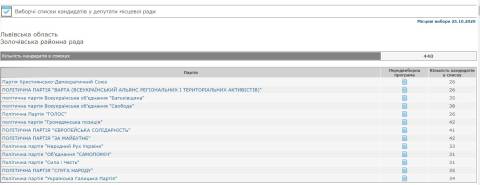 Центральна виборча комісія оприлюднила перелік політичних партій, які беруть участь у виборах до Золочівської районної ради.