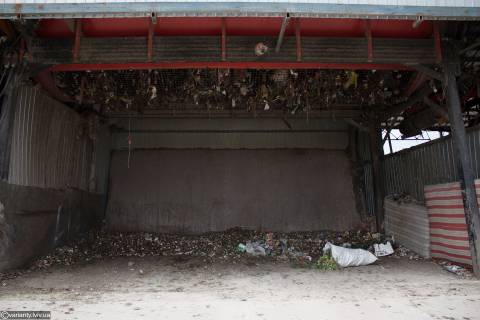 Однак власник швидко зрозумів, що сильний вітер, який гуляє околицями Золочева, постійно розносить сміття. Саме тому довелося добудувати покриття і зараз лінія стоїть в ангарі.