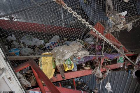 Сортувальна кабіна – це вузьке приміщення прямокутної форми, яке знаходиться на висоті 4-5 метрів від землі. У ньому вздовж стола розташовуються 8-10 кобіт, які вручну відсортовують сміття, вибираючи скло, папір, пластик та інші фракції, що надаються до вторинної переробки.